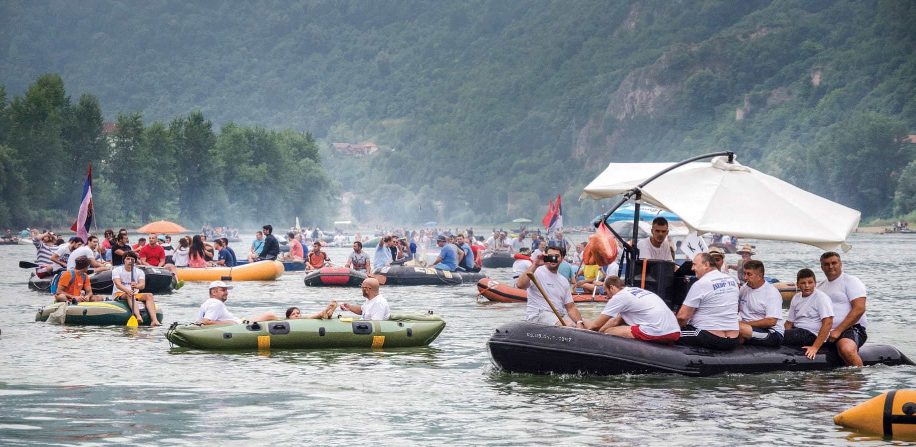 Die international Regatta ‘Die Drina ist nur Eine’ von Mali Zvornik bis Banja Koviljača findet am Fluss statt.